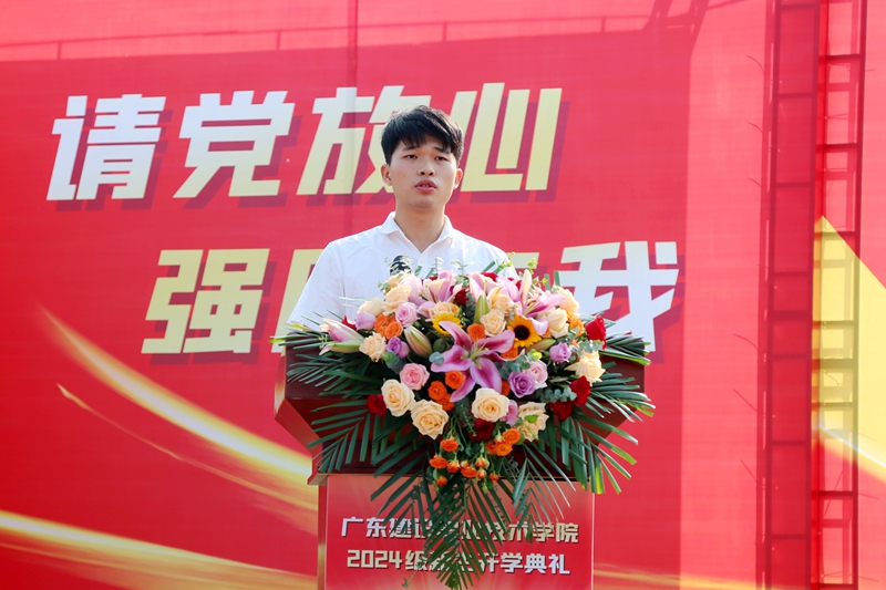 新生代表夏书文表达了对大学生活的无限憧憬,代表全体新生庄重承诺:珍惜时光,自律自强;持之以恒,追求卓越;胸怀匠心,筑梦未来。书写精彩的人生新篇章。